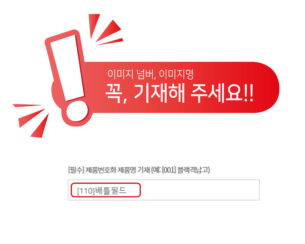 [필수] 제품번호화 제품명 기재 (예: [001] 블랙격납고)