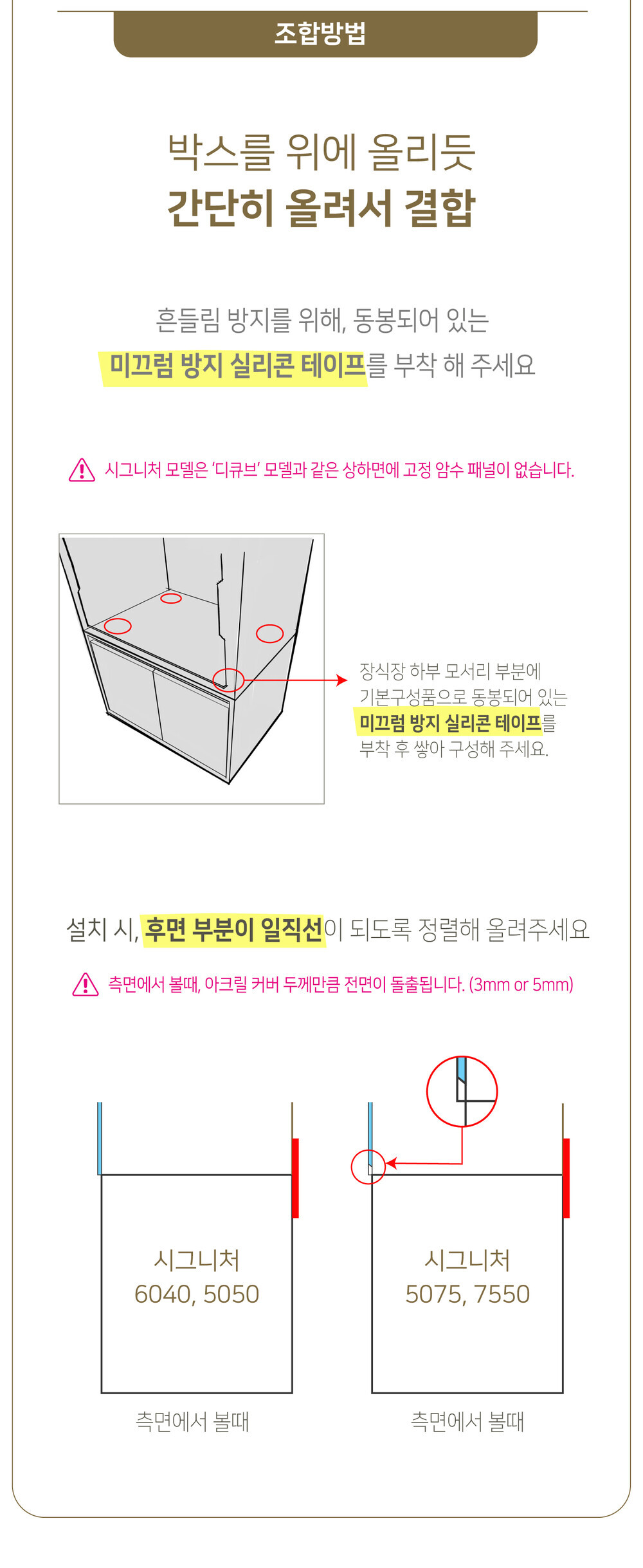 2. 스티커 접착면의 이형지 제거 후 장식장 모서리 4군데 부착하여 사용하세요