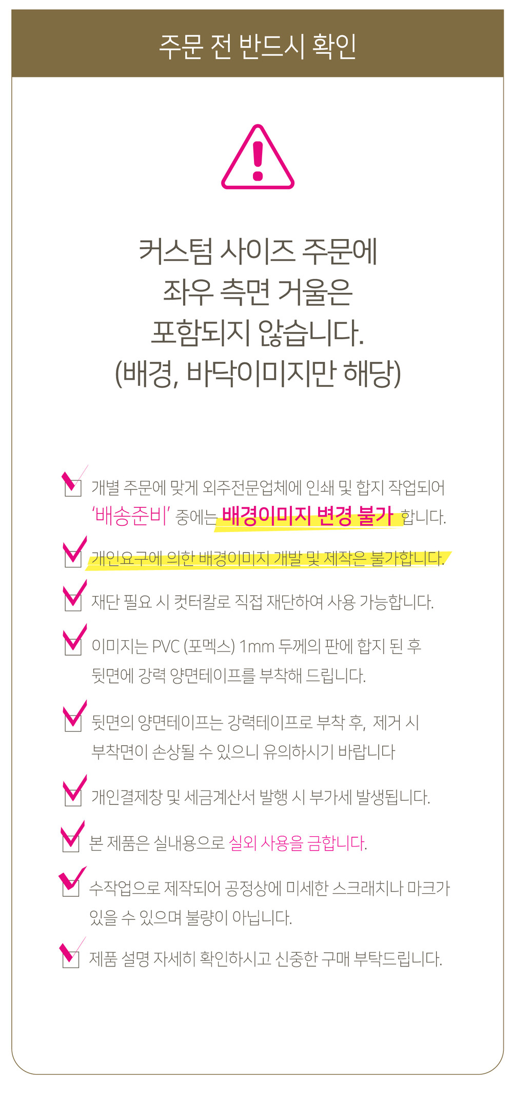 주문내용 및 사이즈를 확인 후